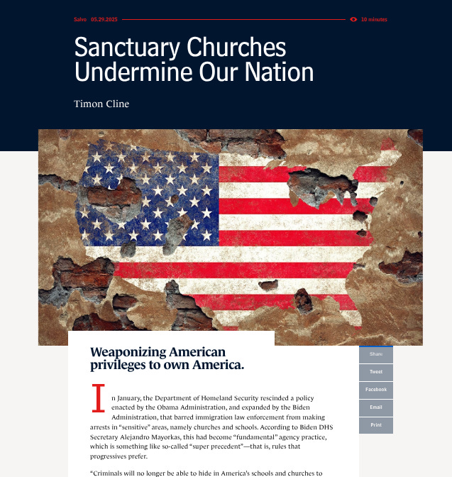“Sanctuary churches undermine our nation,” Timon Cline writes at The Claremont Institute newsletter The American Mind.